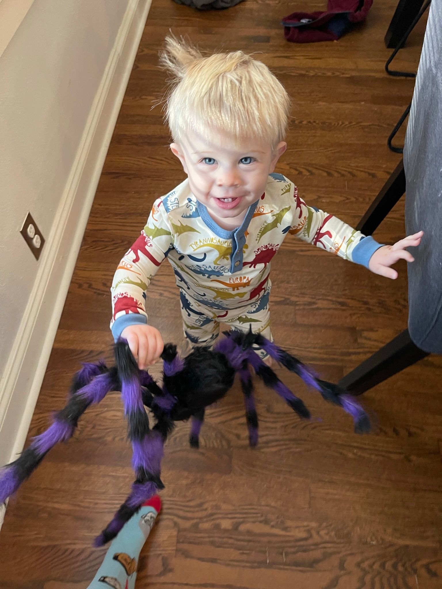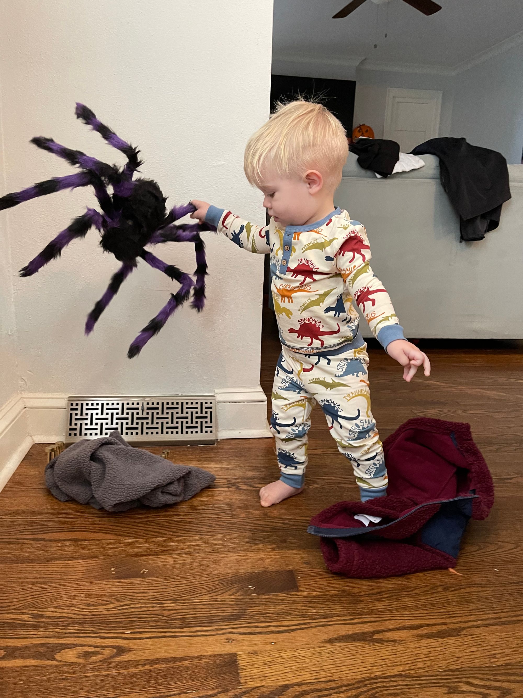 Benson had a Halloween package delivered from Grandma + Grandpa Janis... he is loving the spiders!
