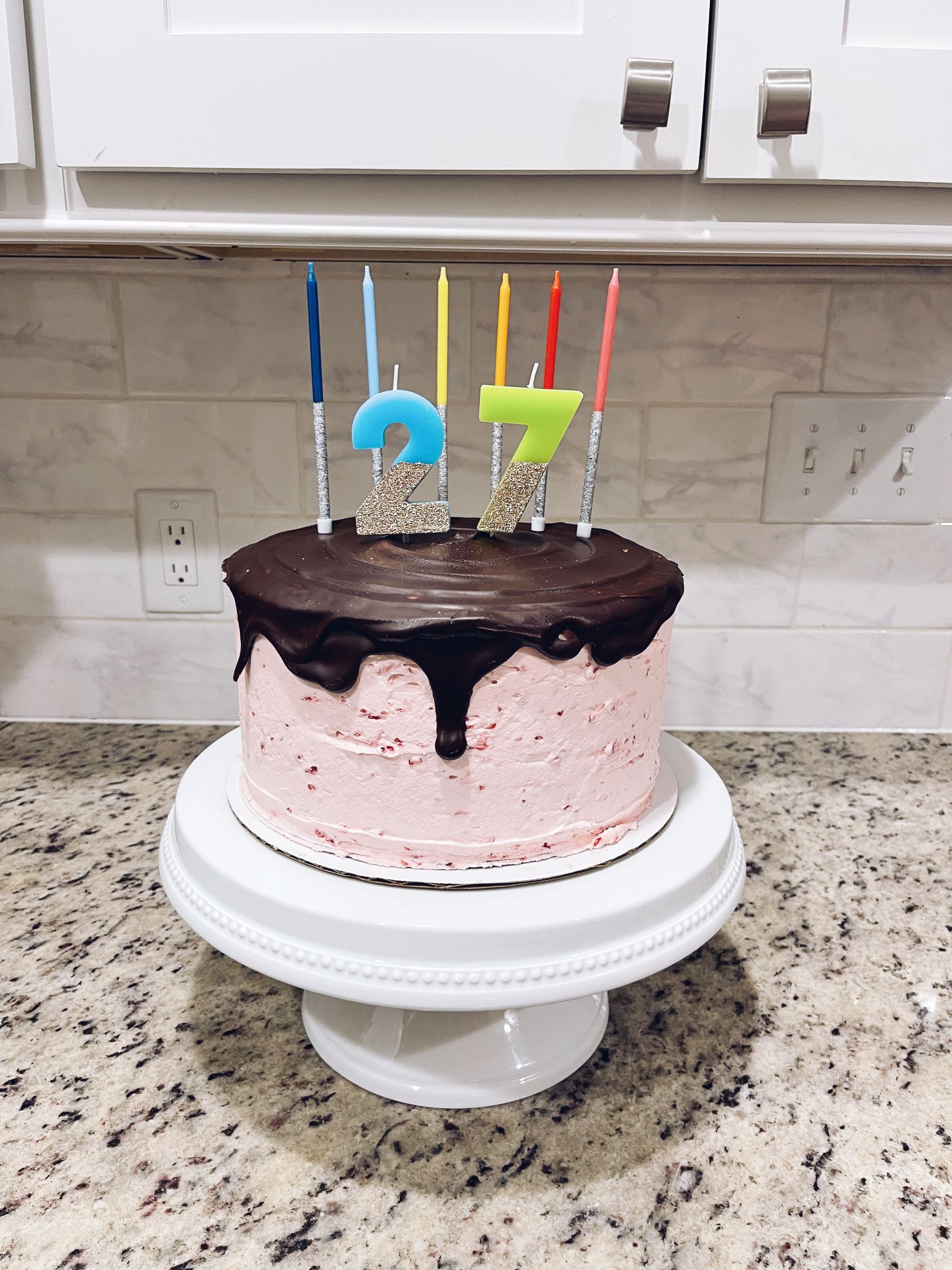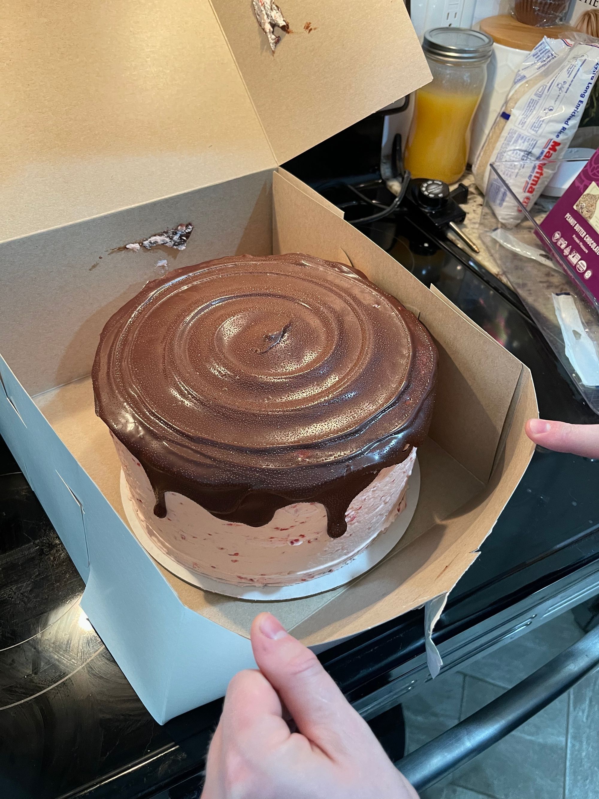 I went to grab the cake and the worker let me know there was a miscommunication and they accidentally made a 6 inch blackberry frosting cake. I told him that was no problem! I would still take it. :) He told me no and then pulled out a 9 inch cake and said they were giving me this instead. Soooo we have a lot of cake!