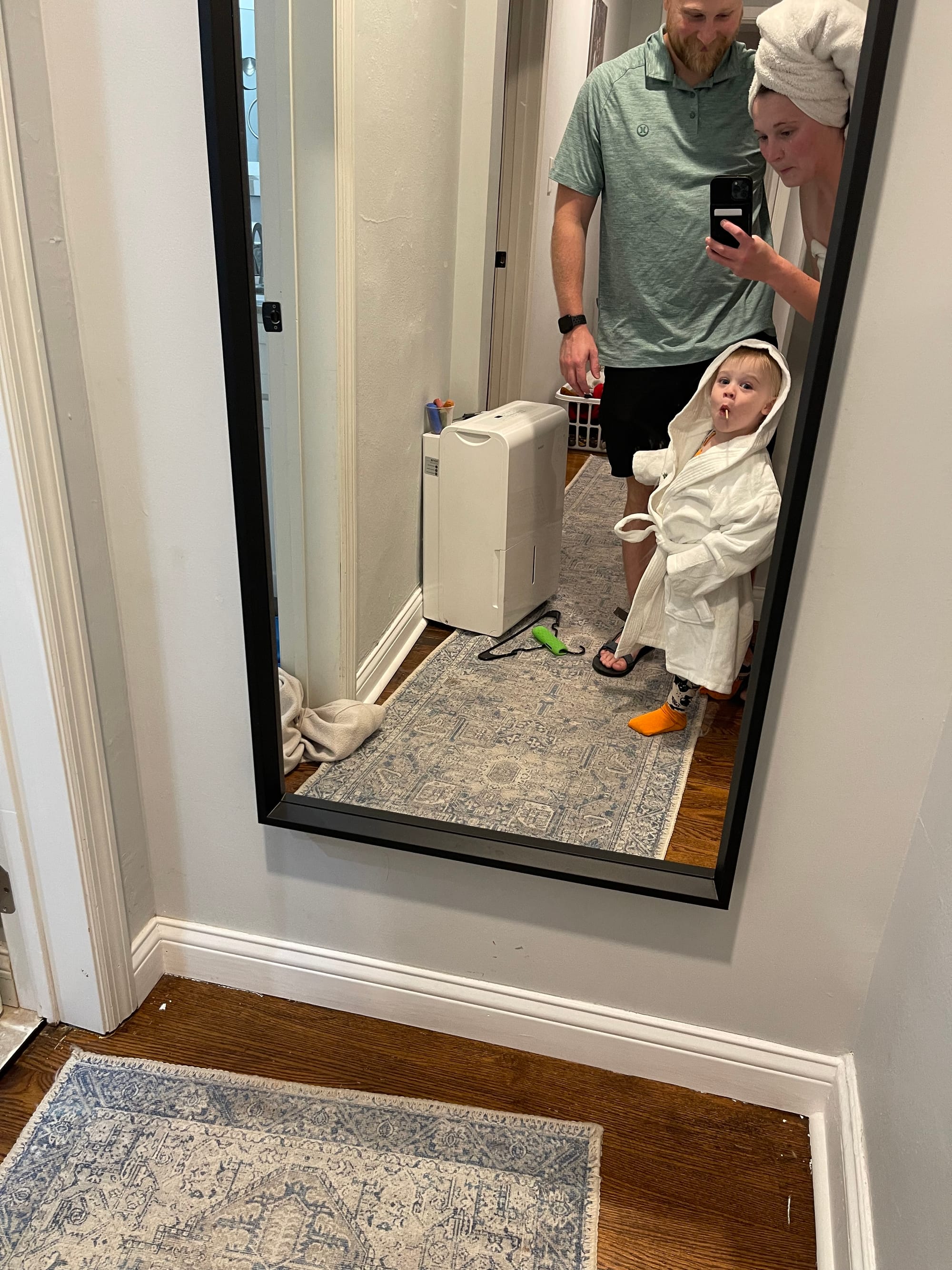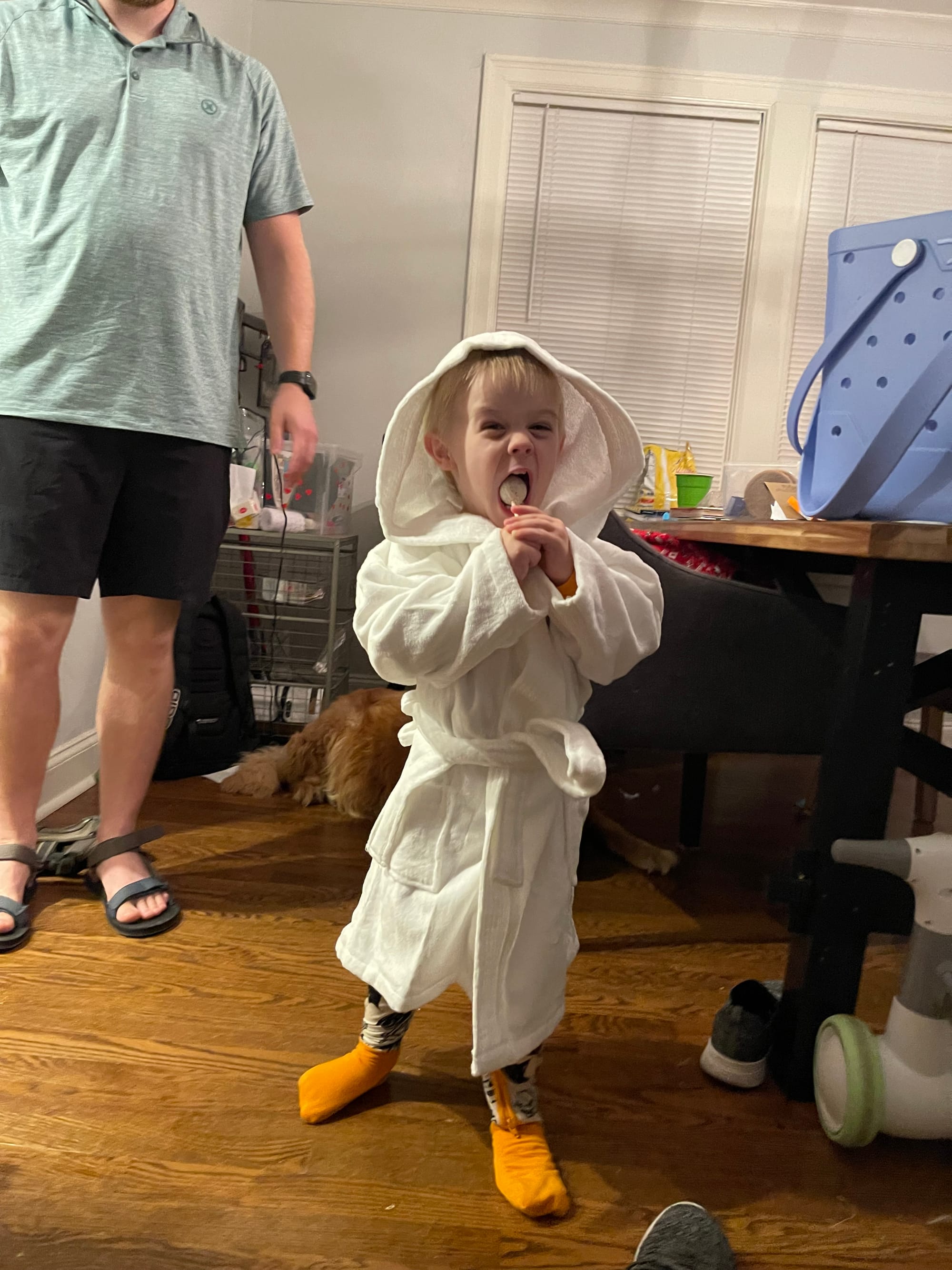 We had a great flight home and were able to all sit together in comfort plus! Logan and Benny picked us up and just like that, back home! :) Maddy got Ben the cutest bathrobe and he looks darling!